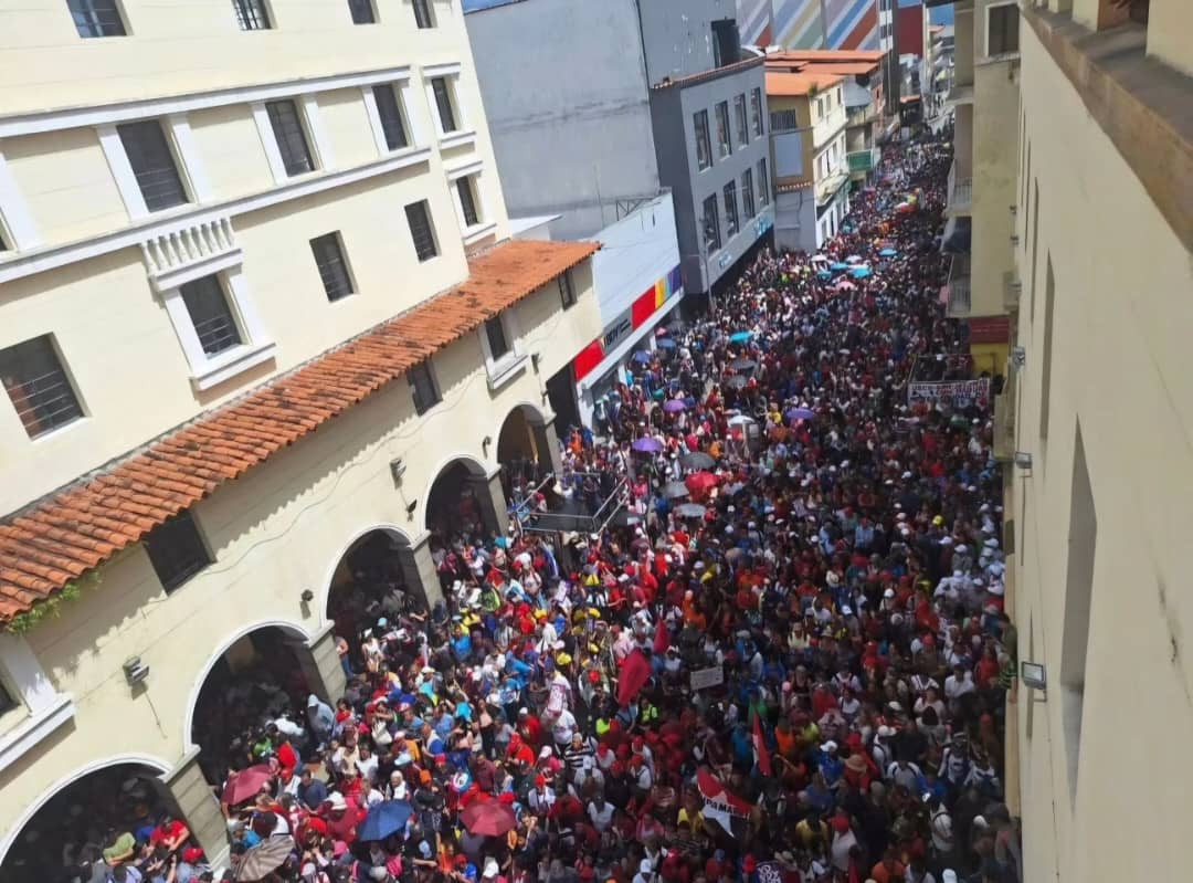 Desde la tarima y en compañía de la primera combatiente, Cilia Flores, la Vicepresidenta Ejecutiva Delcy Rodríguez, del primer vicepresidente del PSUV, Diosdado Cabello, el jefe político estadal de la tolda roja, Jehyson Guzmán y el enlace político del municipio Libertador de Mérida, Jesús Araque, el Presidente Maduro reconoció la resistencia de los merideños ante los ataques de la extrema derecha con las guarimbas, las sanciones económicas y el sabotaje eléctrico.